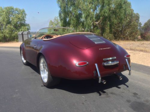 This car is a head-tuner so be ready to receive some extra attention as you cruise with the top down in this wine colored classic Speedster. Now offered - this beautiful 1957 Porsche Speedster 356 Replica. This car was built in 2011 and sold by Vintage Speedsters in Hawaiian Gardens, California and is a 1 owner car. Vintage Speedsters is recognized as one of the premier Porsche 356 replica companies for their high quality, solid builds.  This Speedster is well optioned and is in terrific condition with very low miles. (only 1500)  Includes - Wide body, sharp burgundy paint, 17" Porsche wheels, premium leather upholstery, full carpet kit (including trunk),  disc brakes, full top with boot, tonneau cover, and the solid 1915 cc power plant bring 90hp, external oil cooler with fan and sony stereo CD player.  Very cool little car  Titled as a 1962 Volkswagen   All auction or sales prices do not include any government fees and taxes, or dealer documentation fees. This vehicle is subject to prior sale and auction may be canceled at any time  |