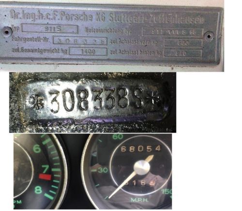 Original, Unmodified, Unrestored, Unwelded, 1967 911S. Original white paint, black leatherette interior. Solid, straight, and complete with all early documentation. Accident free and never raced or rallied. Condition:.
