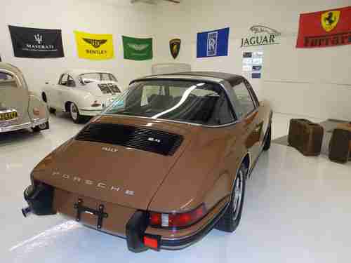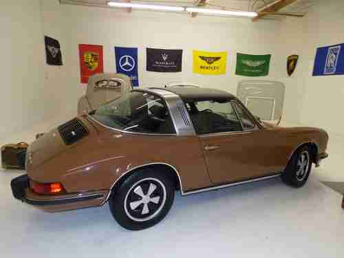 1973 Porsche 911T Targa in great condition. this is a three owner car from new and the original miles are 72,000. Books and records do go with the Porsche to its new owner. the engine runs very strong without smoke or smells the gears shifts seamlessly. this is a super nice driver without any rust or accidents. this is the original color to this Porsche color code 415 Sopia Brown.