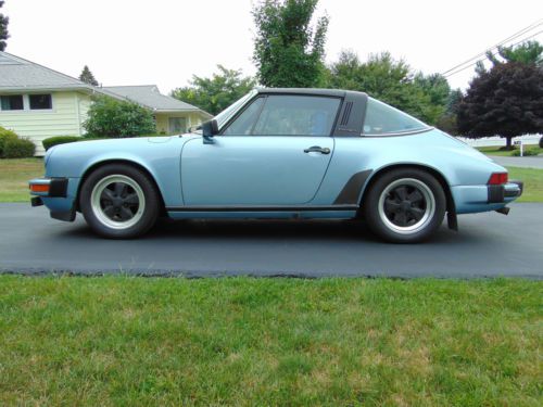 This is an original 1979 Porsche 911 SC that has only 60,428 miles. It has the 3.0 engine and a 5 speed transmission as original. Engine runs strong and the trans shift wells. Brakes work great and all electronics in the car work. Tires are about 1 year old and have very little mileage on them. This is the original light blue mettalic paint with a blue leather interior. The original carpets are in very nice condition and I installed the coco mats for a vintage look. The original tool kit and roll bag will go with it along with a few spares such as fan belts, fuel filter and valve adjustment gasket/hardware kit. Not that they are needed but I have always keep such items in case I needed them. This car is in very nice condition with no rust anywhere and very few stone chips. There is one small ding on the lower drivers door that is hard to see. The dealer installed A/C was not working when I purchased this car. I removed the compressor but left everything else in place. The compressor and bracket will go with the car. I reserve the right to end this auction at any time - It is listed for sale locally on Craig's List. |