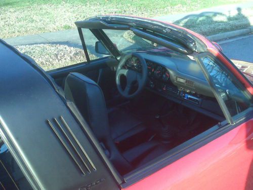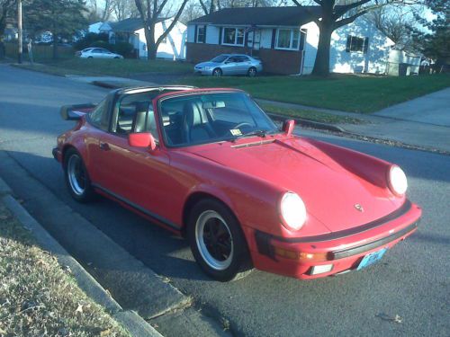 This beauty is a classic guards red whale-tail 1985 911 Targa Carrera in great condition. I bought it in July 2002 and put a lot of care and money into it - had the engine completely rebuilt in 2005 along with new dash gauges, custom Porsche leather racing steering wheel, and suspension - have driven it 80K since then. It runs strong, smooth/quick acceleration, has good compression, no outstanding mechanical issues. Power windows, power locks, CD player. This Targa is very dependable, has always been garaged, and has been well maintained by a qualified Porsche mechanic. No problems at present - am selling to make room in my garage. Paint job is in excellent shape, some chips here and there, no body damage or dents. Serious buyers only please - I will deliver at no charge within 100 miles of Washington DC, otherwise buyer makes arrangements for delivery at their expense. This car is sold as-is, no warranty is implied. Total mileage is estimated at 290K due to engine rebuild and two odometer replacements. No accidents for this car... it is a wonderful, very fast and superb handling 911 Carrera convertible - it can be a daily driver or collector car - turns heads every time I drive it. Center console unit, color matching coco mats, and spare fiberglass Targa top are included in sale... $800 value. |