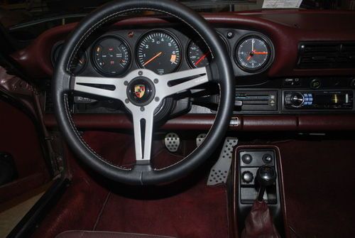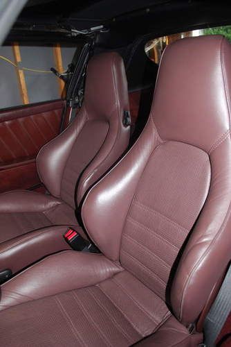 Interior: Burgundy. Sport seats recovered with full leather in 2008. Momo Retro steering wheel. Rennline aluminum pedals with rubber grips. Rennline black colored aluminum floorboards. Black "TOG" front trunk carpet. Professionally converted cab top to manual (with Targa latches). Updated stereo (Alpine 25Wx4 with Alpine speakers under stock covers; iPod connector cable.