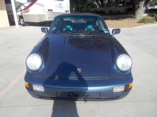 HI YOU ARE BIDING ON A 1990 PORSCHE CARRERA 4 964 COUPE AWD BEAUTIFUL COLOR COMBINATION FACTORY BALTIC BLUE PAINT BLACK LEATHER INTERIOR FACTORY POWER SPORT SEATS PAINT LOOKS GREAT STILL NICE AND SHINY ALWAYS HAND WASHED AND WAXED IT HAS A FEW MINOR DINGS AND SCRATCHES CAR IS IN EXCELLENT CONDITION IN AND OUT ALWAYS GARAGE KEPT ALWAYS ATTRACTS A CROWD CAR HAS A 3.6 L ENGINE NATURALLY ASPIRATED 84.000 ORIGINAL MILES 5 SPEED MANUAL TRANSMISSION CAR RUNS AND DRIVES EXCELLENT ALWAYS SERVICED AND MAINTAINED ALL ORIGINAL MANUALS AND DOCUMETS I HAVE THE ORIGNAL RADIO PHONE TOOLS FACTORY WHEELS WITH NO CRUB RASH NEW TIRES INTERIOR AND HEADLINER IN PRISTINE CONDITION NO RIPS OR TEARS DASH PAD IN EXCELLENT CONDITION NO CRACKS ALL GAUGES WORKING PROPERLEY THE CAR DOES HAVE A SMALL CRACK IN THE WINDSHIELD AND A MINOR OIL LEAK WE ARE ONLY THE SECOND OWNER OF VEHICLE ADULT OWNED NAVER ABUSED THE CAR IS A REAL STUNNER YOU WILL NOT BE DISAPPOINTED NON SMOKER NO PETS CAR IS CURRENTLY REGISTERED WITH CLEAN TITLE AND CARFAX . TERMS OF SALE . please note that the car is sold in as is condition with no warranty expressed or implied please carefully read the terms & conditions of the sale before bidding winning this auction does not entitle you to come inspect the car and decide if you want to buy it but obligates you to complete the purchase! A 1,000.00 non refundable deposit is due within 24 hours of the action close ... and balance within 72 hours deposit to be made true a bank wire or cash in person sorry no paypal I don't have a paypal acct NO EXCEPTIONS UNLESS AGREED ON BEFORE AUCTION ENDS. BUYER IS RESPONSIBLE FOR VEHICLE PICKUP AND TRANSPORT FOR MORE INFO CALL (818) 481-6366 CAR IS ALSO LISTED LOCALLY SELLER HAS THE TO END AUCTION AT ANYTIME GOOD LUCK HAPPY BIDDING