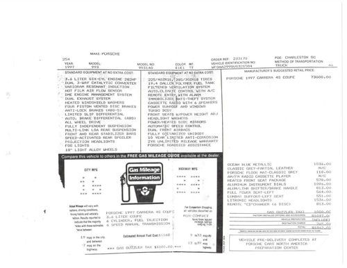 Immaculate car no dents or scratches, clear protection film on all panels except roof. See window sticker for options, options added after purchase thru, Porsche Tequipment are carbon fiber dash, aluminum door sills, hi fi door panels ( originals available).