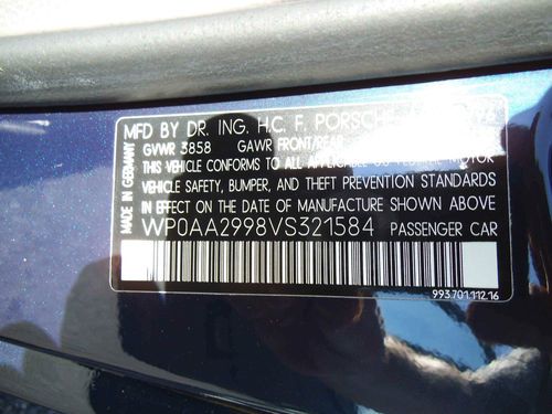 Purchased as Porsche Certified vehicle in 2001, many maintenance records since, all up to date. No modifications all original, everything works as new. Rare desirable ocean blue on classic grey, best color combo for 993 wide body car. You must see this color in the sun! Last of the air cooled cars a true timeless classic that will never go out of style.