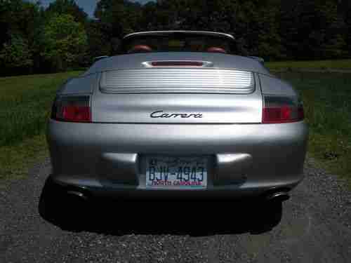 Selling my 2002 Porsche 911 Carrera Cabriolet. No accidents and a spotless CarFax. 3.6L (320HP) engine. I bought it from a Doctor who owned it for most of its life in NC (since 18k miles). It now has 118k miles and runs smooth and strong. Arctic Silver Metallic exterior with black fabric top. Beautiful two-tone deep red and black interior. 6-speed manual transmission. Interior and exterior in very good condition. Wheels are all in mint condition (like new with no curb rash) and tires have good tread remaining. Fresh oil change with Mobile 1 and new air filter and cabin filter last month. Convertible top works perfectly and in very good condition. Porsche option packages on this car include: Bose Stereo Premium Audio Pkg with Remote CD Changer, 18 Light Alloy Carrera Sport Wheel Pkg, Xenon Headlamp Pkg, Dual Power Seat Pkg, Full Custom Leather Interior Pkg, Wheel Caps with Porsche Crests.