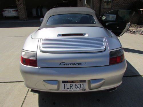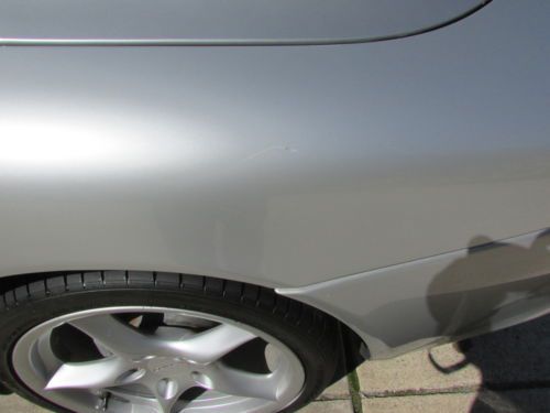 2003 PORSCHE CARRERA CABRIOLET FINISHED IN SILVER WITH BLACK CONVERTIBLE TOP, WITH REAL GLASS, OVER BLACK LEATHER INTERIOR. THIS PORSCHE COMES EQUIPPED WITH A 320 HORSEPOWER 3.6 LITER HORIZONTALLY OPPOSSED 6 CYLINDER, 5-SPEED TIPTRONIC S TRANSMISSION, 18 INCH LIGHT ALLOY CARRERA WHEELS, WHEEL CAPS WITH Carrera 4, HANKOOK TIRES, XENON HEADLAMP, POWER SEAT PACKAGE, HEATED FRONT SEATS, PORSCHE STABILITY MANAGEMENT, LUMBAR SUPPORT, BOSE SPEAKERS, RADIO CHANGE TO A CLARITON HIGH END SOUND PACKAGE, SATELLITE RADIO WITH NAVI, PLUS ALL BOOKS, 2 KEYS AND STANDARD EQUIPMENT, Kelly blue book $31,246 STARTS RUNS AND SHIFTS LIKE NEW, NO LIGHTS ON DASH, INTERIOR LIKE NEW EXCEPT FLOOR MATS OUT OF ANOTHER CAR NOW THE SMALL THINGS WRONG #1 WINDOW ON DRIVER SIDE DOES NOT GO DOWN THE 1/4" TO CLEAR TOP WHEN OPENING THE DOOR, IT DOES GO UP THE 1/4" WHEN IT IS SHUT, BUT ALL WINDOWS AND TOP WORK PERFECT EXCEPT THAT LIKE PROBLEM. #2 SEE PIC OF 3" SCRATCH ON REAR QUARTER PANEL #3 THE DISPLAY SCREEN FOR HEATER HAS DAMAGE IN VIEWING ANY QUESTIONS PLEASE EMAIL OR CAL 304-855-9522 |