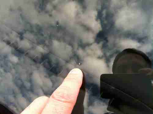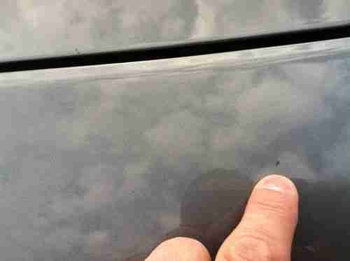 There are a couple of small stone chips on hood, bumper and passenger side mirror, and there is a stone chip low on windshield. (all shown in pictures)