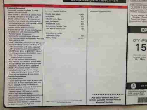 ...THE ORIGINAL MSRP WAS $139,920 (I JUST ADDED A COPY OF THE WINDOW STICKER)...NOT COUNTING THE $6,000 MODULAR CONCEPT RIMS. THE OPTIONS ARE...HEATED FRONT SEATS, SPORTS CHRONO PACKAGE TURBO...FULL LEATHER...MATCHED FLOOR MATS...6-SPEED MANUAL.
