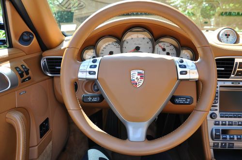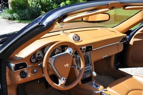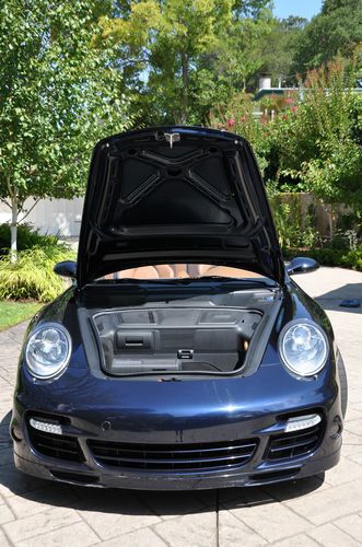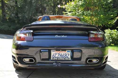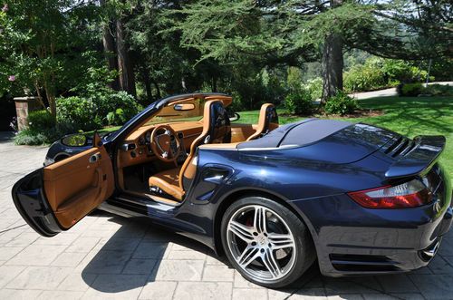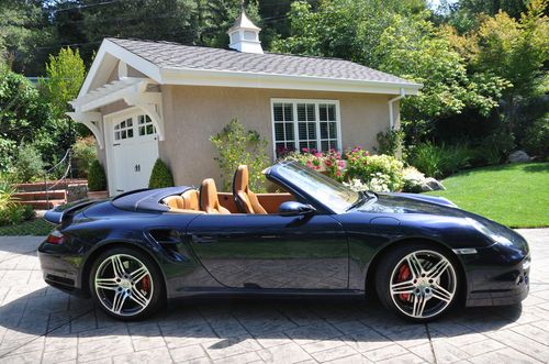 2008 Porsche Turbo Convertible, mint condition (never driven in rain, only hand washed, always parked in garage), all service records, 48,000 miles. Midnight Blue Metallic (incl. front spoiler lip & front air intake painted, seat backs painted), Natural Brown Leather interior (incl. embossed Porsche logo in headrests and center console lid), Tiptronic Plus, Sport Chrono Plus, Porsche Communication Management (incl. navigation system), and heated seats. Gorgeous all around!