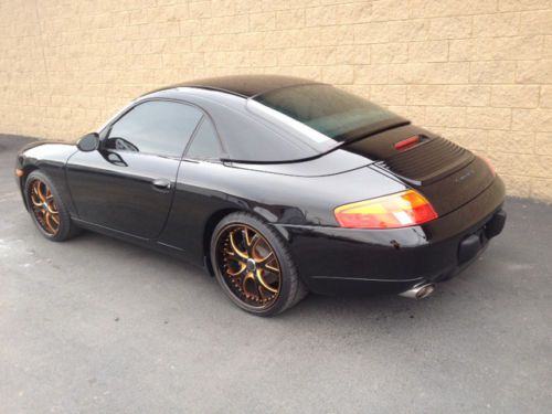Scott C's Classics and Collectables is offering another great part of Sports Car History. This is a Very Nice 1999 Porsche Carrera 911 Convertible. This Convertible Has a New Retractable Soft and Comes with the Painted Hard Top. This Black Exterior with Black Interior is a real head turner everywhere you go. The Black and Gold ASANTI Forged Wheels complete the Look. This 911 is powered by a 3.4 H-6 and Manual Transmission. This car is a true joy to drive and a great example of how well Porsche engineers its vehicles.