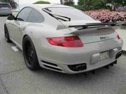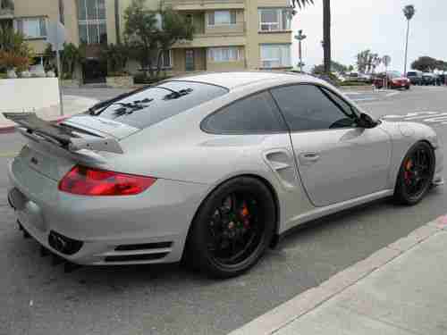 Here is a very special, very rare limited production 2007 Champion Motorsports K1 Werks One 997 Twin Turbo with only 11k unmolested miles. Excellence Magazine Cover Car May 2008 Issue. 658 HP / 631 TQ - Champion Motorsports Forged Magnesium MS61 with Poggipolini Titanium Wheel Bolts - 19x9.0 with 235/35ZR19 Pilot Sport Cup Tires ( new ) 19x12.0 305/30ZR19 Rear - Champion Motorsports Sport Springs ( 25mm lower ) Champion Motorsports front and rear bump steer kit - Porsche GT3 Cup front and rear Control Arms equipped with spherical bearings - Front and Rear Champion adjustable sway bars - Front Upper Strut Tower Brace - Porsche PCB Brakes - Custom Werks 1 Calipers - Champion Motorsports 63.5 MM Generation I VTG Turbocharger Upgrade - Werks 1 Carbon Fiber Air Box - Werks 1 Composite Generation II Intercooler Upgrade Kit - Werks 1 Carbon Fiber Y Pipe and T Pipe with 82 MM throttle body upgrade - Tubi Exhaust System - Tubular Headers with full merge collectors - GIAC Software Upgrade - Champion Motorsports Aluminum Flywheel and Sachs Sport Disc and modified pressure plate - Porsche GT3 RS Roll Cage - Carrera GT Carbon Fiber Race Seats - GT3 RSR Alcantara Race Wheel - Alcantara Interior Full Trim Package - Custom "Man from Chile" Grey Paint - Werks 1 Carbon Fiber Front Splitter, Rear Diffuser, and Rear Wing.
