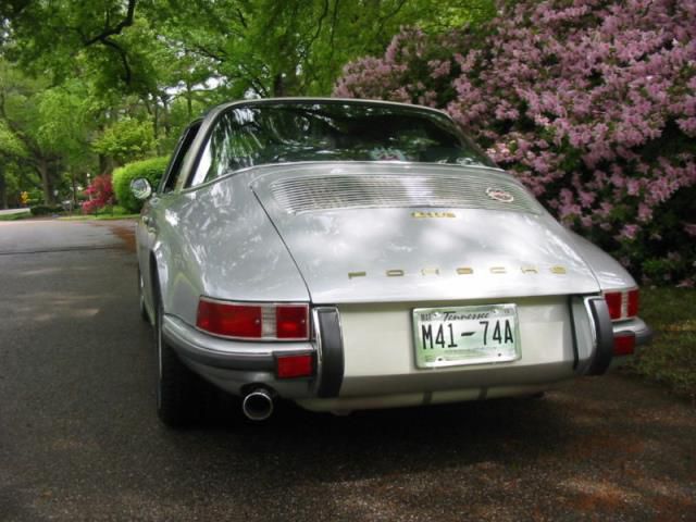 Original numbers matching 1970 911E targa in factory correct silver metallic with complete (and correct) Bosch MFI in superb running condition. Car has 88,900 miles and is one of the better early E cars available today. Gearbox has just received a complete re-build with fresh clutch and motor has been tuned by Pat Williams (Pat Williams Racing) here in Memphis - There was minor rust repair at the driver's door (latch area) and a few small bubbles below the passenger side rear window.........all rust cut out and repaired properly, taken down to metal and re-sprayed in correct Glasurit from the doors back. Car retains correct date matched Fuchs (with hearts) and comes with original books, including owner's manual and maintenance booklet. Original dash in excellent condition as well as the entire interior .Car also has SSI heat exchangers - does lot leak and does not smoke.