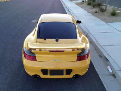 2001 Porsche 996 / 911 Twin Turbo. (NO RESERVE) We have been the owners of this car for almost 8 years. Features: - Carbon Fiber Package - Suede Headliner - Navigation - Satellite Radio - All Options (power mirrors, doors, windows etc) - Sunroof - Factory Roll Cage - GT3 Seats - Cold AC - 147k Miles on car. Motor rebuilt by Porsche at around 75K. (25k cost rebuild) - No Rust Car (West Coast only) Great Details: - Motor / car has never been modified. - 3.6 ltr Turbo Motor (was Rebuilt by Porsche Dealer Mechanics around 80k Miles. (25k Rebuild) - Car runs fantastic and can be a daily driver or driven cross country. - We have the RECORDS for just about everything we have maintained on the car. - Car pulls as strong as it did the day we purchased it - We purchased the car at a Porsche Dealer in San Diego - Car has always had is typical service. - NV requires all cars to pass smog every year, so this car will pass smog if you live in a state that requires it Recent Maintenance: - New Brakes & Rotors (2012) - New tires (2013) - New Mass AirFlow Sensor (2013) - New Fuel Pump (2014) - Typical oil changes Paint: - Paint still shines like new thru-out the whole car - Front right side nose of car has paint chipping of do to something hitting the nose while moving. (cracks in paint in that area) - Drivers side panel and spoiler HAVE been repainted about 5 years ago to do someone "keying" those panels. - The car has been a daily driver for some time, so there is typical wear but overall it still looks great. Little Things you may want to fix: - Drivers window sometimes will not scoot up its last 1/8" to make the seal (after you move the interior handle a bit it will scoot up its last 1/8") - 6 DISC player broke a few years back. Porsche replacement on ebay is around 100.00. We just use an ipod. - Passenger airbag light is on - GT3 Seats SIDES (by your hips are worn and there is some foam showing on the drivers side) Summery: We have had this car for quite a long time and it's time to get something a bit more practical. Its also wiser for us to invest in our business then it is to keep such a pretty car. This car has been treated with care but does show typical wear. It's a good looking, very reliable car that will serve is next owner very well. If you have any questions , feel free to email. |