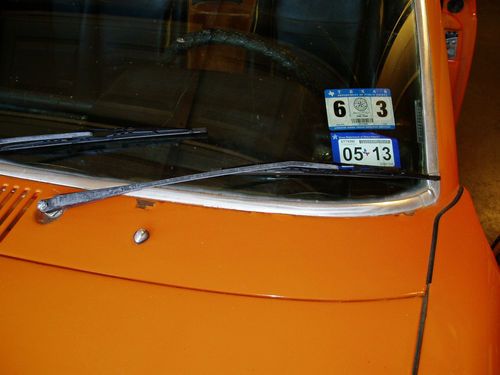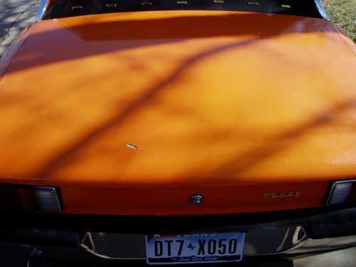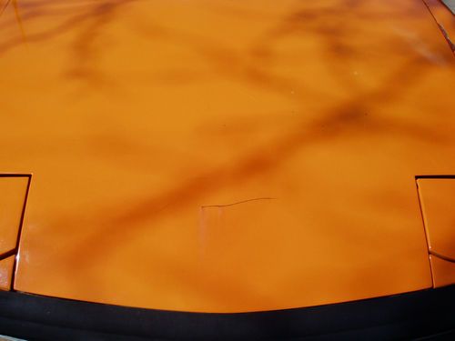 The front and rear trunk lids (as you can see in pictures) have been sat on and the paint has cracked. There are a few places that the paint didn't adhere to the body and has chipped, such as next to the finder and front lid and under the windshield. The windshield has wiper scratches and the mirrors are replacements.