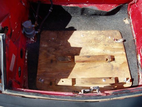 The front trunk has a hole in it that I have been told was for an after-market A/C. The person I got the car from had never removed the wooden floor that covers that hole. The Green floor you see in the pictures was purchased to have that floor repaired - which is included with the sale of the car. I have replace the rear trunk lid springs with damper lifts as well as hinges for the rear lid that were bent.