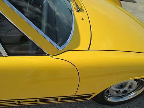Here is a wonderful 2 owner 1974 914, I found thid in Texas and just to buy it!! 1st owner southern CA, 2nd owner south TX. This car was parked by the 2nd owner in 1993 due to a bad ignition switch and had sat since. Starting with a great car ,only rust was the battery box and even it was not that bad,but I replaced anyway. This car has the orig. WINDOW STICKER and every receipt back to 1974! comes with car! Car was 100% orig. when I started on it. The interior is as it left the factory,down to the front and rear floor matts. And it is a 9+ out of ten. It does have the appearance package option. We dropped the engine and fixed any and all leaks ( car doesnt leak a drop!) has the orig. Dunlop spare never on the ground. All books,keys,records,tool kit,jack. Porsche service book stamped up to 1980. Front and rear trunks have orig. carpet in exc. condition(even has the orig. noise matt in the rear. Car retains all orig. fuel injection. I have tons of pictures (300 PLUS THAT COME WITH THE CAR) before i started and during paint and rebuild. Car was repainted due to years of road rash, Paint is the orig. paint code, sunflower yellow and is outstanding! (cost was $4800) My plan was to keep this one but another car has caught my eye. Every thing works as it should but the clock. 100% ORIG. AND CORRCET. car is fast ,pulls very hard,drives straight as an arrow and now stops on a dime After researching the car I found the engine was completley rebuilt in 1990 at a cost of $5100 and the trans. rebuilt at the same time. With all the records and history on this car I just had to do this one to the highest standard i could (but always put way to much to ever get my money back ) A excellent driver that anyone could show as it sits, this is not a "10"but a 9+ all day long. one of he best drivers out there period and a Hagerty "3" Replaced,repair battery tray all new vacum lines plug wires-coil new Bursch exhaust new Optima battery gas tank out,cleaned all new brakes new rotors-pads rebuilt calipers all new wheel bearings all 5 wheels powder coated new tires new nos bumper top on the front rear trunk rollers all fresh fluids 4 wheel alignment every part repaired-replaced-inspected PICTURE 2 THROUGH 5 IS THE CAR AS I BOUGHT IT!!!! BEFORE RESTORATION... RUST FREE EXAMPLE Thanks for looking, Charles 1-815-262-5665 | |