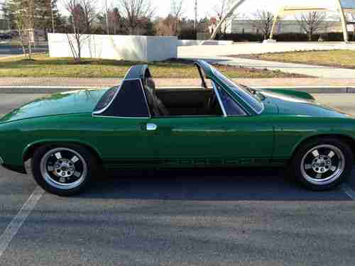 Here is a very nice driver quality 914. You do not see many of these on the road and this is definitely a great looker. Let me start off by saying this is not a perfect 914 or a 10k plus vehicle. This is a local car show vs. a barrett jackson vehicle. From ten feet the car looks new but I have photographed a couple bubbles on the front fender and the door jam. It runs absolutely perfect. The interior is about as nice as you will find. All electrical works including the clock and interior lights. There is one small crack on the dash right below stereo. If you look you can see in the photo.