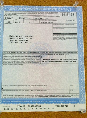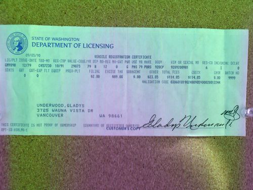 Please take note of viewer's question re the VIN number. The tag on the door is correct: VIN NUMBER IS 9289200981. New photos being added to show: 1979 sales contract, State of Washington application for title, & official mileage verification form. All show correct VIN number. We took the vin from the sales label we found in her original owner's manual and apologize for our error.