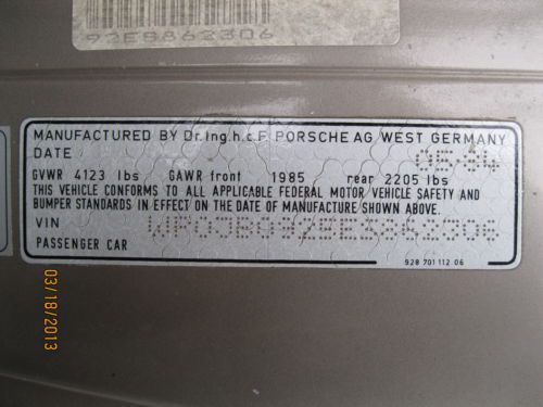 Painted in July, 2013. Rated a strong 8 of 10 with minor imperfections showing when you look very closely. $2200 spent on body work and paint. They missed one tiny dent on the roof behind the sunroof the size of a dime. This car was originally bronze & the door jams were not painted black. Recently reupholstered light weight Porsche Recaro front seats. Rear seat bases were removed for speakers. Needs interior restoration in hatch area. Dash is cracked, but has a custom dash cover. Very dependable with a huge stack of maintenance records, including original invoice from Porsche dealer in Alabama. Recent tune-up including plug wires & battery. This is a southern car free of rust having spent most of it's life in Alabama & Georgia. Clear issue free Georgia title in my name. OEM Porsche spare tire & jack included. Car has a few minor electrical issues. Gas gauge & engine temp gauge don't work right all the time. I fill up based on the number of miles I've driven. Climate control fan doesn't work. Power windows work, but the switches are broken and bypassed. Power locks and cruise control don't work. Stereo works fine. I installed new front door speakers, but haven't hooked them up yet. Power steering line has a small leak. $110 for a new line, or repair existing line. I have never tried to open the sunroof, as I don't want it to open & then not close. Brakes are good, but pads are approaching the point of needing replacement. Stops just fine. I drive this car on 75+ mile trips on a regular basis. Headlights open & close as they should & were painted as well. Wipers work fine. Odometer works & was replaced by the previous owner with all zeros. Documentation included. I think the total miles is right around 100,000 based on the documents. Now shows just over 3,200 miles. I drive this car regularly & it has proven to be dependable for a 30 year old car. This is a great weekend car or driver, but not a show car. It is now 30 years old. The original front lower spoiler is still there, but has a few cracks & chips. It sits very low & is vulnerable to damage. If you want a replacement, they are available & easy to replace. It has near new Rikken matching tires with great tread life left. If you want the original power seats, I will swap them back & reduce the price $500.00. I have a set of staggered 17" Porsche Carerra 5 spoke rims with Michelin Pilot (rear tires worn to tread mark) if you'd rather have them, I'll swap them out. I've taken the time to accurately describe this car, but may have missed something. I welcome inspections prior to purchase. Fly to Atlanta & drive this car home. Please understand you're bidding on a 30 year old car! If you'd like a show 928, please bid on one that is twice this price. If you want a cool driver or weekend car consider this one. Note terms of payment and abide by the terms of ebay & this auction. If you don't have any feedback, please contact me prior to bidding. This car is available for sale locally & subject to be removed from ebay prior to auction end. If you really want it, use Buy It Now feature. The windshield is crack & chip free. The wheel wells were coated with undercoating last month. All of the gauges in the instrument cluster work with the exception of the fuel gauge & engine temperature gauge which sometimes works fine, other times pegs to the top. I suspect a grounding issue which is common with this car. The headliner is complete & in very nice condition, as are the front & rear sun visors. A large collection of maintenance records, including the original bill of sale are included with this sale, as is the red OEM owners manual folder (manuals didn't come with the car.) |