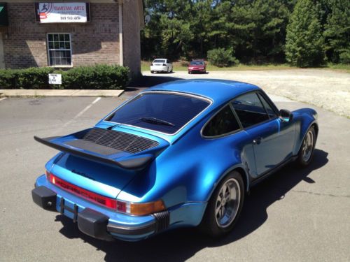 Early Turbos are getting harder and harder to find, all early 930s have been skyrocketing in price and like the early S cars, it wont be long before the cost of admission for any good car is over $100,000. This 930 has been in the possession of one Nevada owner since the late 1970s, it was delivered from the factory in the highly unusual color combination of Minerva blue (304) over tan. As a long time desert car, it has literally zero rust. My contact at Porsche was able to pull the history on the car and has verified that it is matching numbers. This car has been through a recent thorough mechanical restoration, I have receipts totaling roughly $30,000 for engine and gearbox work and the car is exceptional to drive. This 930 was repainted once and the paint is showing its age. Depending on how particular you are, it could be enjoyed for awhile as is however the new owner should budget to have the paint redone. A local viewing and inspection is encouraged with appointment. We are happy to help buyers worldwide with shipping and freight logistics. |