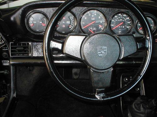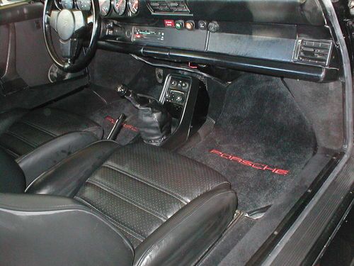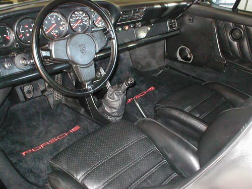 ALL GLASS IS FACTORY INCLUDING THE WINDSHIELD. ALL RUBBER, WEATHER STRIP & WINDOW GASKETS WERE REPLACED. THE DASH IS FLAWLESS AND ALL GUAGES THERE & WORKING. SEATS WERE FINISHED IN CONNELLY BLACK LEATHER COVERING THE FRONT 930 SPORT SEATS AND REAR STOCK SEATS. FACTORY HEADLINER AND HIGH GRADE PORSCHE CARPETING COVERING THE PERFECT FLOOR INCLUDING THE 930 'RUBBER MAT' FOR THE DRIVER. IT HAS A POWER SUNROOF.