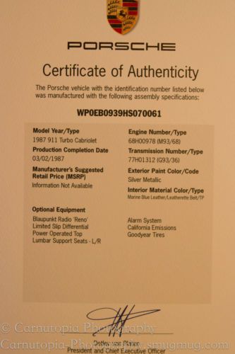 FOR SALE a rare 1987 930 Cabriolet, 73,175k miles. Metallic Silver with a Marine Blue top and leather interior. Originally a California, the previous owner is a doctor in North Carolina where he had the car for 11 years. I purchased the car 2 years ago (72,793 miles) and replaced brakes and rotors all around, completed minor maintenance, detailing, oil change, sourced and installed original Fuchs wheels. A set of 4 turbo twist wheels and tires go with the car as part of the deal. Car is very quick, motor runs great, dry underneath, clutch does not slip,power top, windows, door locks, seats, electronic heater controls all work great. AC blew cool when I purchased the car but blowing warm now, likely needs a charge. Records going back to 87 show most work done over the years including engine, trans, clutch work along with replacing the convertible top and installation of a stainless steel exhaust. |