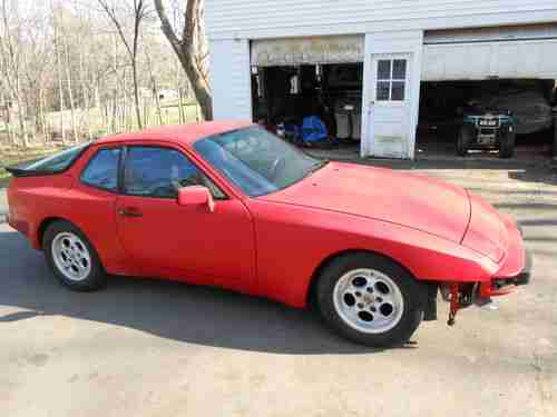 This is a 1985.5 porsche 944. This is the first year with the updated interior and all aluminum suspension. The car has 153,000 on its, and runs and drives great. The car has a abandoned tittle that i have all the dmv paper work for, the car has to be vin verified at the dmv before registering. i have recently put a new fuel pump and filter, front brake caliper,new clutch master cylinder,new battery,and new K and N air filter. The car has also been alined, and drives down the road perfectly strait. I have owned many 944s and the suspension feels great, the engine is runs strong, and the transmission shift perfectly smooth. the interior is in great condition with half black and porsche cloth seats with no rips and only minor fading. The exterior is original porsche red that is slightly faded. there are some small dents on the rear bumper next to the hatch key hole, and small chips in the front nose and hood. there is no bumper on the car now, but it comes with a used front bumper from a black 944. please call Tim at 860 8360636 with any questions.