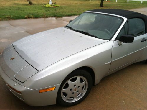 PORSCHE 944 CABRIOLET CONVERTIBLE ROADSTER. OWN A PORSCHE THAT WILL TURN HEADS, but NOT DESTROY YOUR POCKETBOOK Porsche made very few factory 944 convertibles. (Cabriolet). This is A Very Nice low mileage for years, example. GREAT ENGINE. This one is an example of one that has been meticulously maintained with only 89,000+ ORIGINAL miles. Serviced by Dumont’s in OKC since 2009. ORIGINAL MANUALS, INCLUDING SECURITY RADIO AND EQUALIZER BOOKS!! ORIGINAL TOOL SATCHEL with TIRE and OTHER TOOLS! CLEAN HARDLY WORN CARPET both in TRUNK and interior. 1 ORIGINAL BOSE stereo system WITH EQUALIZER STILL WORKS PERFECT BUT CD only plays some CD’s for some reason. 2. ORIGINAL DOOR ALARMS with red blinking door lock and dash when armed 3 New front ball joints, struts 4 Replaced alternator, timing belt, shaft belt, cam belt ~79,000 under 3 years ago. New engine timing and balance belts New front lower control arms and ball joints NEW and fully installed. New front wheel bearings NEW TIRES!! only 1000 miles on tires Alignment Brake pads replaced in last 10,000 miles Engine 208 crank hp, or greater, as the S2 was one of the stronger It still feels to me as strong today at 89000 original miles as it did when off the showroom Exterior cosmetics Very good, not perfect. The car had been repaired and painted in the rear driver side, but not noticeable to anyone but someone in the business. A couple of small dings and a small dent in rear that looks like a designed detail, so no one ever notices it. Interior Excellent condition, all leather, but driver seat has a small hole left by a pencil I think. The dash is pristine — I keep it covered with a Dashmat, but has no aging or cracks etc. Comes with the stock seats. The driver side door storage panel has come out of its socket, (see picture) and I haven’t taken time to remove screws to reinsert. |