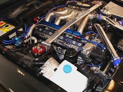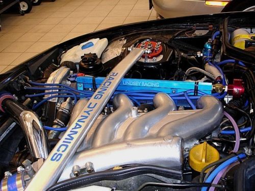 ENGINE:Lindsey Racing Knife-edged, Cross-drilled, Balanced, & Micro Polished CrankshaftLindsey Racing Stage II Cylinder Head Lindsey Racing Super 61 Turbo w/#8 hot housing Lindsey Racing Race Valve Spring Set Lindsey Racing Billet Fuel Rail Kit Lindsey Racing Stage 5 Intercooler Lindsey Racing Oil Pan Baffle Kit Lindsey Racing Stage 3 Mass Air Flow Kit Lindsey Racing Intercooler Hard Pipes Lindsey Racing Manual Boost Control Kit Lindsey Racing Modified Wide Fire Ring Head Gasket Lindsey Racing Cylinder Head Steam Vent Kit Lindsey Racing Billet Aluminum Expansion Tank Lindsey Racing Silicone Vacuum Line throughout Lindsey Racing Mafterburner Piggy Back Fuel Controller Lindsey Racing Magnacore 8mm Silicone Plug Wires Lindsey Racing Billet Aluminum Ultra Mounts Lindsey Racing Clubgate wastegate Web-Cam #274 grind camshaft Eugo 2000 Wideband O2 Sensor Kit Bosch High Volume Fuel Pump Pauter Forged Connecting Rods Factory .50mm oversize Forged Alloy Piston Set Late Version Oil Pan Windage insert New Porsche Main, Rod, and Balance Shaft Bearings New Porsche Water Pump New Porsche Cam and Balance Shaft Adjuster Pulleys & Idler Rollers New Porsche Timing & Balance Shaft Belts New Porsche Crank, Cam & Balance shaft seal races Porsche Head Repair gasket set New Porsche Bottom End Gasket / Seal Kit New Porsche Hydraulic Lifters Evo Motorsports Billet Blow-off valve Engine components painted with Ceramic High Temp Paint Powder Coated Intake Manifold, Cam Housing, & Cam Gear Housing Venturi tube/cycling valve delete package New Porsche Radiator New Porsche A/C Compressor New Cad plated hardware 42 pound Bosch Fuel Injectors Porsche O.E. Oil Filter New O.E. Porsche engine temp. senders (at head) Custom additional oil cooler system with stainless Aeroquip hoses Weltmeister DME & KLR chips New Porsche Spark Plugs Porsche Distributor Cap & Rotor EXHAUST:Lindsey Racing 3" Exhaust System (to be upgraded to 3" downpipe w/4" straight thru exhaust)Exhaust system is Thermal Coated Magna Flow Catalytic Convertor Lindsey Racing 2-piece Cross-over Pipe Thermal coated headers BODY:Lindsey Racing Stage 5 Header PanelLindsey Racing A-pillar Gauge Pod Custom "951" Aluminum pedal set Momo Cobra billet shift knob Autometer Cobalt electronic fuel, vacuum/boost gauges NPR back-lit white faced gauge faces Blue carbon fiber dash face & center console panels Racing Dynamics Strut Brace Rebuilt front control arm ball joints & bushings New Porsche steering rack & tie rods 968 M030 Front Sway Bar^aˆ¦^aˆ¦30mm 968 M030 Rear Sway Bar^aˆ¦^aˆ¦19mm...3-hole adjustable Koni adjustable strut insert w/height adjustment Koni rear coilover shocks w/separate adjustable compression & rebound Rear torsion bars deleted Racers Edge billet camber plates Hypercoil springs front & rear 18" Anterra 5-spoke wheels w/custom paint blend (smoked - black and clear) 235-40-18 Yokohama AVS ES100 tires, front 275-40-18 Yokohama AVS ES100 tires, rear Blue metallic powder coated Brembo brake calipers Brembo cross-drilled brake rotors Stainless steel brake lines GT Racing front splitter Porsche 968 outer mirrors Brey Krause 4-point harness bar TeamTech 6-point Harnesses European fog/driving light assemblies European H4 headlight conversion All side & tailight lenses smoke tinted Nano-Ceramic window tinting Mirror finish Deep Gloss black paint job TRANS & DRIVETRAIN:Lindsey Racing Stage 3 SPEC clutch kit w/Hybrid Puck/Kevlar DiscLindsey Racing Lightweight SPEC Aluminum Pressure Plate Weltmeister Short Shift Kit |