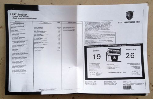 First owner was a Colorado dealer who ordered this when the car was new and 'ungettable,' with a promise to sell it to me after 1-2000 miles, which is what we did. He gave it light use, and I've owned it since then. It's been in Colorado for a couple of years and then Arizona since 2000, always garaged. Dealer serviced (Prestige Imports in Lakewood CO at first; Porsche Scottsdale which evolved and became Porsche North Scottsdale for the past 14 years). Hardtop has not been on it since I bought it (that was the original guy's choice; I haven't needed it). Zenith Blue Metallic was the original promotional color for the Porsche 911 that year, when it became water-cooled for the first time (which is of course what made this mid-engine Porsche possible!).