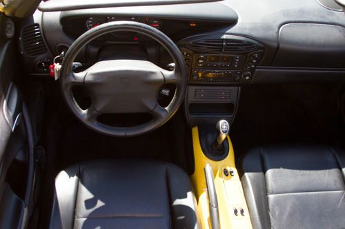 Options - Sport Package (CD In Dash, Hi-Fi Sound Pkg w/Speakers, Wind Screen, Cruise Control, Keyless Remote), Traction Control, 17" Wheels 'Boxster-Design', CD Shelf in Center Console, Black Porsche Mats, Console and Roll Bar Painted Speed Yellow