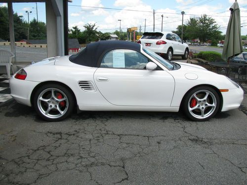 2003 Porsche Boxster s only 56,000 one owner miles Beautiful 2003 Porsche Boxster S ready for the drive home anywhere. This one original owner car was purchased new at Brumos Porsche in Jacksonville Florida and has been well maintained all of its life. We have just completed the early 60,000 mile service here at our award winning Porsche shop and this car is ready for the road. Loaded with many more options than the standard fare, among the options are the litronic headlamp system, rear speaker package, full leather interior, bose sound system, navigation, traction control, and optional travel case. Listing for over 69,000 dollars, the options alone totaled over $18,000 so figure you are buying the options and getting the car for free!!! For any other information on this or any other Porsche we are listing on e bay, please call George Hussey at 770 427 2844 ext 111 or 404 308 5652. Automobile Atlanta since 1978 specializing in the best in Porsche parts service and sales.