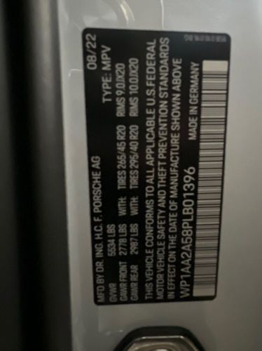 VIN (Vehicle Identification Number): wp1aa2a58plb01396