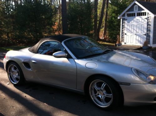 1997 Porsche Boxster - Silver Exterior with Black Leather Interior. Current Mileage 96,675. Great Condition, garaged, new updated 18in wheels and tires less than 2000 miles ago. Recent clutch, pressure plate, fly wheel and intermediate shaft seal (replaced within last 20k miles). Recent 4 wheel brakes, performance exhaust. New ECU on-board computer - passes all safety and emission requirements. Pioneer super tuner 3 cd with Blue Tooth Remote and an Audison RX-300 4 channel amplifier. Built in radar detection device. This Porsche is in excellent overall condition for its age, a couple of minor scuffs on front bumper (not very visible), very minor wear in the interior for its age, updated plastics in interior-
