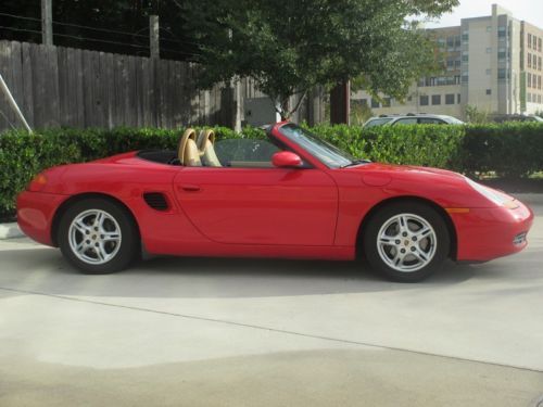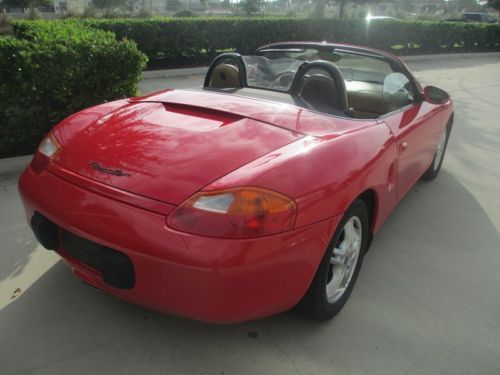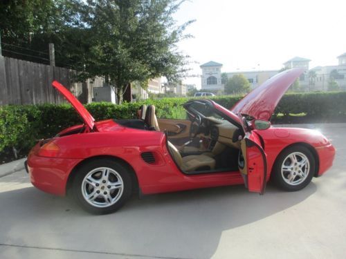 UP FOR SALE IS A 2000 PORSCHE BOXTER, TWO OWNERS, CLEAN CAR-FAX, NO ACCIDENT, NO PAINT WORK. TIRES THREAD AT 85-90%(ALMOST NEW), RESENT MAINTENANCE DONE BY OUR DEALERSHIP WHICH INCLUDES: A) OIL/OIL FILTER (SYNTHETIC) B) AIR FILTER C) BRAKE PADS D) BRAKE FLUID FLUSH THERE IS NO OIL OR ANY OTHER FLUID LEAK AT THE ENGINE OR TRANSMISSION! COLD A/C, TOP ALMOST LOOK BRAND NEW, FACTORY TITAN/LEATHER SHIFT NOB/PARKING BRAKE UPGRADE! AFTER MARKET SONY STEREO CD PLAYER, ADULT DRIVEN... WITH FULL CONFIDENCE WE CONSIDER "MINT CONDITION" FOR THIS CAR.