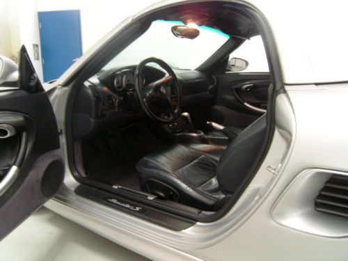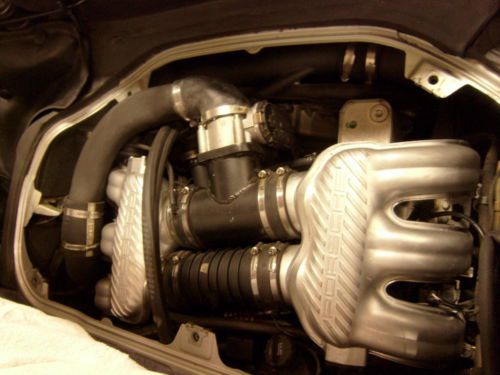 Presented here is my very nice 2000 Boxster S, purchased by me 3/2007 in California with 53155 miles. Now at 73,300. A very solid Boxster S with wonderful handling and ride. Great top down mountain road carver. This is a fast, extremely smooth 2000 silver Boxster S, dark blue full leather, heated seats, AC, Litronic Headlights, Hi Fi Porsche stereo CDR 220 with speaker box/cubby option behind seats, 6 speed, color matching Porsche Hard top, good Convertible top, Air Conditioning, Aero Rear wing and side skirts, 17" wheels. and many upgrades that do not detract from drivability/usability or MPG, only better. Always passed smog test. Every thing works. Upgrades in 2007, 2009 and 2011. UPGRADES ROW30 Porsche suspension with HR 22mm rear sway bar Rear Techno Brace ( pedrosgarage) GT3 front adjustable control arms QUAIFE Torque Sensing Limited Slip Differential SPEC stage 1 Clutch/Pressure Plate Light Weight aluminum flywheel LN IMS/RMS Intermediate Bearing and Rear Main Seal LN 160 degree thermostat LN oil filter adaptor for spin on NAPA 1042 Gold filter and magnetic drain plug Procharger self oiling Supercharger --- 4.5lb boost --- with installation CD and supporting documents. - Schnell exhaust headers -- removed two of 4 Catalytic converters, stock CAT back muffler --- no problem passing smog/emission test. - Powerchip ECM software upgrade - adjustable fuel pressure regulator - slightly larger fuel injectors - K&N cone filter Shift linkage upgrade Aluminum front strut brace 2004 GT3 look front bumper cover with screens 17" 911 wheels --- 9" wide, 55mm set back (all four) with 15mm spacer on back wheels Lamin-X headlight lenses protection film Half hood clear bra On Board computer hack to display outside temp, fuel mileage, distance to empty, with switch on console Shift light in console -- set at 6500 RPM Top down silver dust cover MAINTENANCE New Hankook R-S3 tires -- 245/40/17 front, 255/40/17 rear. No tire rub anywhere. Recent FERODO brake pads New Air Mass sensor (Porsche upgrade) and fuel filter All Spark plug tube O rings replaced and NGK spark plugs Left rear inner CV joint (Rubber below was split) Rear wheel bearings Original engine parts removed -- air cleaner box, air pipes, fuel injectors, and a spare serpentine belt that all go with the sale. I have receipts since I purchased it, but none before from previous owners. |