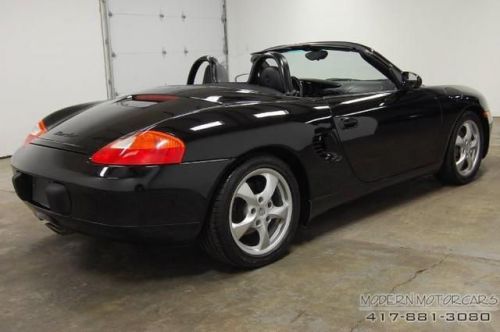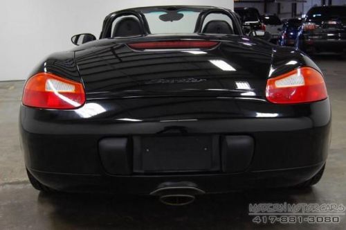 2001 PORSCHE BOXTER ROADSTER WITH ONLY 57K MILES TRADED IN HERE AT MODERN MOTORCARS. 5-SPEED MANUAL TRANSMISSION, BLACK LEATHER SEAT WITH DRIVERS POWER AND MEMORY, KEYLESS ENTRY, CRUISE, POWER TOP AND MORE. SHARP CAR THAT DRIVES GREAT!! CALL 888-615-2538 TODAY TO GET MORE INFORMATION OR TO BUY THIS VEHICLE TODAY. MODERN MOTORCARS IS OWNED BY DON HUNSAKER. WE DO TAKE TRADES. MATTER OF FACT, WE WANT THEM WE OFFER FINANCING. WE CAN BEAT MOST RATES/TERMS WE HAVE WARRANTIES AVAILABLE ON EVERYTHING WE SELL WE WANT YOUR VEHICLE EVEN IF YOU DON'T BUY FROM US MODERN MOTORCARS IS FAMILY OWNED AND OPERATED ALL PICTURES AND A HISTORY REPORT ARE AVAILABLE AT WWW.MODERNMOTORCARS.COM WE ARE LOCATED 3 MILES SOUTH OF SPRINGFIELD ON CAMPBELL/160 HWY AT CC HWY. JUST 2 DOORS DOWN FROM GODFATHERS PIZZA