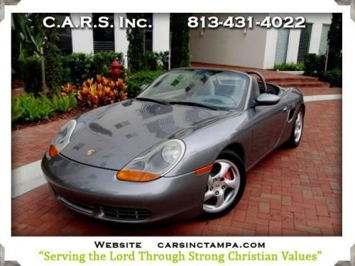 2002 Porsche Boxster S...6 Speed Manual.. Power Windows/ Power seats..AM/FM/CD/Cassette...Bose Premium Audio...Power Soft Top....Clear Back Glass..Incredible Ride and Drive Condition....No History Of Paintwork or Body damage....Pictures are worth a thousand Words...Please go to our website at carsinctampa.com and view the consistent quality of all of our inventory or just stop in Downtown Tampa for a visit ...we specialize in locating vehicles for clients as well as carry a Fine Inventory of Quality Pre-Owned Luxury and Sports models.....Look closely at the detailed photo's .......We do accept Trade In's...... WE CERTIFY THAT EACH AND EVERY VEHICLE WE REPRESENT WILL HAVE HAD NO MAJOR BODY DAMAGE HISTORY OR PREVIOUS STRUCTURAL DAMAGE HISTORY..... EVER!.....Carfax or Auto Check reports are available upon request on any vehicle and should there be a history of a previous incident, we will walk you through our findings and explain the report personally so that you will know in detail the quality of the vehicle you may consider purchasing.....Our Dealership never charges additional Dealer Delivery Fee's, as most of our competitors do... Most vehicles are eligible for extended service contracts or have remaining factory warranty. Dealer implies no warranties or guarantees unless specified in writing. WE HAVE DEDICATED OUR DEALERSHIP TO OUR CHRISTIAN MINISTRY, serving the Lord by giving Testimony TO EACH OF OUR CLIENTS AND FRIENDS and Demonstrating a High level of Business Ethics and Integrity. We specialize in an inventory of BMW, Jaguar, Porsche, Mercedes, Audi, Lexus, Land Rover or Locating Exactly The Vehicle You Desire. We are committed to saving you TIME, MONEY and the HASSLE other dealers may place you through...Guaranteed, Judd Cook. WE CERTIFY THAT EACH AND EVERY VEHICLE WE REPRESENT WILL HAVE HAD NO MAJOR BODY DAMAGE HISTORY OR PREVIOUS STRUCTURAL DAMAGE HISTORY..... EVER!.....Carfax or Auto Check reports are available upon request on any vehicle and should the We have dedicated our dealership to our ministry as Christians, serving the Lord by giving Him testimony and demonstrating a High Level of business ethics and integrity in every phase of the of the retail automobile sales process. We specialize in an inventory of fine BMWs, Mercedes, Jaguars, Porsches, Audis and fine SUVs, saving our clients TIME, MONEY and the hassle which may occur elsewhere.