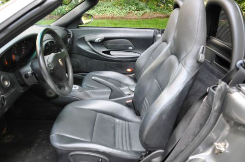 This 2003 Porsche Boxster is from one owner/ non smoking individual. The car is clean and ready to go. 66,000 Miles This car is well maintained and all the Maintenance records are with the car It has a Tiptronic Automatic Transmission Seal Gray with Black Leather upholstery CD Player with AM/FM stereo radio Power Seats Power Top and Power Windows Spare Tire has never been used This car is kept in the garage and has never been driven in the snow. |