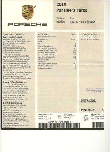 I purchased this car new in 2010 and have meticulously maintained it since. All required maintenance was performed by Porsche of the Mainline and I have kept all service records. I mostly used this car for my daily work commute which consisted almost entirely of highway driving, it was garage kept every evening. The exterior and interior are practically flawless. A 3M clear bra was installed immediately after purchase and the car has been professionally detailed recently. The car has a black exterior full leather interior in "Luxor Beige", 20-Inch Spyder Design Wheels, Michelin pilot super sport tires, Sport Chrono, launch control, AWD, PDK, Navigation, Back up Camera, Parking sensors, Communication Mgmt Sys, Heated seat and much more. I'm the first owner and do not smoke. This car has never been in an accident, it has no paint chips, no door dings, and no paint touch ups.