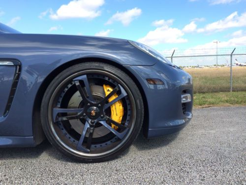 This 2011 Porsche Panamera Turbo comes in Yachting Blue with black leather interior and is very well equipped. Porsche Crest on front and rear seats. Fitted with gorgeous 22 inch Savini SV32 painted to match with a black chrome lip. Audio sytem is upgraded and is hidden. Does not take any trunk space. Integrated Passport Radar keeps the cops at bay and tells you if the stoplights coming up has cameras. Rear seat windows and rear windshield have electric privacy shades. Bluetooth,sunroof, and Navigation. 2 keys.