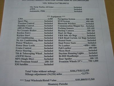Porsche certified warranty, 1.9% financing, premium package, reverse camera, xm(US $70,682.00)