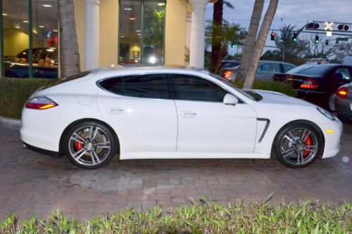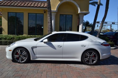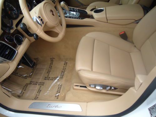 I am proud to announce the arrival of this stunning 2010 Porsche Panamera Turbo. Finished in Carrera White over Luxor Beige Leather, this AMAZING Panamera Turbo has only been driven 37,970 hwy pampered miles. It was delivered in December of 2010 and has PLENTY of factory warranty remaining. This Panamera Turbo is striking and ready for it's new owner! Porsche's first venture into a sedan has redefined the entire segment. Maserati Quattroportes, BMW M5s, Mercedes-Benz S63s, and even Aston Martin’s Rapide cannot compete with the performance and athleticism of the Panamera Turbo! Motivated by a turbocharged V8 engine, transmitting its power through a sophisticated dual-clutch 7-speed automatic and AWD, It is a true 4-door, 4-seat sports car. The design language of the exterior and interior is very modern and unmistakably Porsche! This Panamera Turbo is LOADED with highly desirable options such as REAR BACK UP CAMERA upgraded factory wheels Burmmester High-End Surround Sound System and so much more!! If you are looking for the performance of a Porsche, in a crisp and trendsetting 4-door, your search ends here. It has factory warranty till 12/2016, and what a color combination! This is the right Porsche Panamera Turbo for YOU! PORSCHE PANAMERA TURBO STANDARD EQUIPMENT