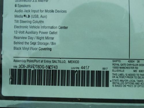 VIN (Vehicle Identification Number): 3C6JR6DT8DG592743