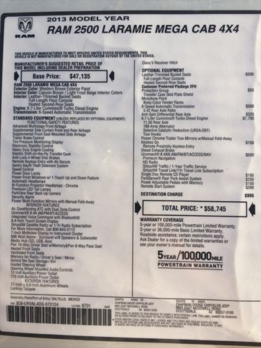 2013 Ram 2500 Laramie Mega Cab Pickup 4-door 6.7l Cummins Diesel 4x4 1 Owner on 2040-cars