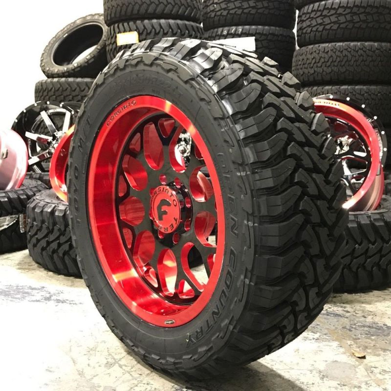 22x10 Custom Forgiato Wheels Brushed Red with Gloss Black (less than 1000 miles)