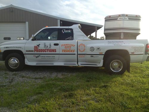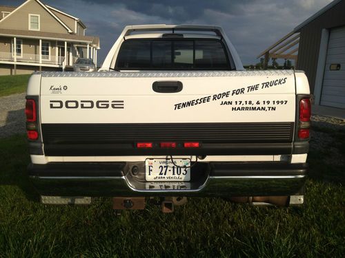 2x4 extended cab 3500 SLT dodge dually. This is a trophy rodeo truck i won in Tenn. A very clean, garage kept, 5.9 cummins diesel with only 66000 miles. 6 new tires, new drive belt, hood bug deflectors, fastback on the cab, spray in bed liner, diamond tread rail covers and tailgate cover, flip down gooseneck ball, rubber bed mat, electric trailer brake pad, running boards from tire to tire, rear tire mud flaps,rodeo promotional stickers. This truck is in excellent shape and have never been smoked in. This truck has many extras and is a must see. These are promotional stickers and can be removed. Price is firm! Contact number is (540)250-5755. Located in Dublin, VA.