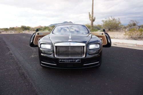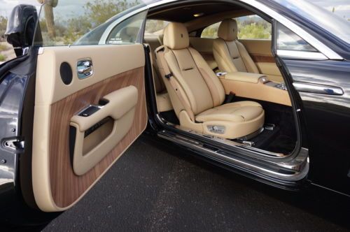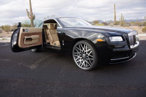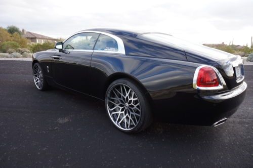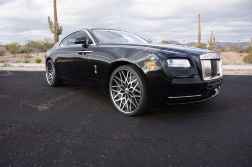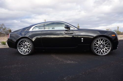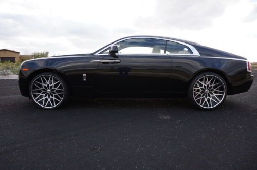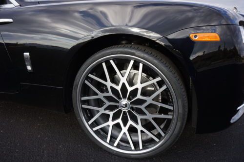 2014 Roll Royce Wraith. This pristine example is available and on the ground in Scottsdale, AZ. Do not wait up to two years for an order car. Please come by and see this. It was featured at the SEMA show in Las Vegas. It has the factory 21" wheels with the floating RR center cap. The 24" Forgiato wheels and Pirelli tires are included in the sale. Call or email with question 602-300-8720 or jim@promotorsports.com. The options are listed below.