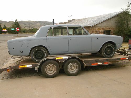 YOU ARE BIDDING ON A 1971 ROLLS-ROYCE SILVER SHADOW SEDAN LEFT HAND DRIVE. THIS IS NOT A COMPLETE VEHICLE AND IT IS NOT IN RUNNING CONDITION. YOU ARE BIDDING ON A RUST FREE BODY THAT IS IN PRIMER READY FOR PAINT. THE CAR HAS A CLEAN NEW MEXICO TITLE. THE CAR HAS ALWAYS BEEN IN THE SOUTHWEST SINCE NEW AND THAT EXPLAINS THE RUST FREE BODY. THE SILVER SHADOW WAS UNDER RESTORATION AT A SHOP HOWEVER THE RESTORATION WORK WAS NEVER COMPLETED. THE CAR STILL HAS THE MOTOR HOWEVER THE MOTOR IS NOT COMPLETE - MISSING ITEMS INCLUDE THE RADIATOR, DISTRIBUTOR, CARBURETORS, AND OTHER SMALLER ENGINE COMPONENTS. THE TRANSMISSION IS STILL IN THE CAR AS WELL AS THE REAR END. ALL FOUR WHEELS AND TIRES GO WITH THE CAR. ALL THE GLASS AND CHROME THAT YOU SEE ON THE CAR IS IN GOOD TO VERY GOOD CONDITION. THERE ARE NO BUMPERS, NO GRILLE, NO FLYING LADY HOOD ORNAMENT, NO INTERIOR, NO DASH OR DASH COMPONENTS. THE CHROME ITEMS THAT GO WITH THE CAR ARE THE CHROME ON THE WINDOWS, CHROME ON WINDSHIELD AND ON REAR WINDOW. IF YOU HAVE A RUSTY BODY ON YOUR SILVER SHADOW THIS IS THE PERFECT TRANSPLANT PLUS IT GIVES YOU MANY EXTRA PARTS. PLEASE EMAIL ME IF YOU HAVE ANY QUESTIONS.